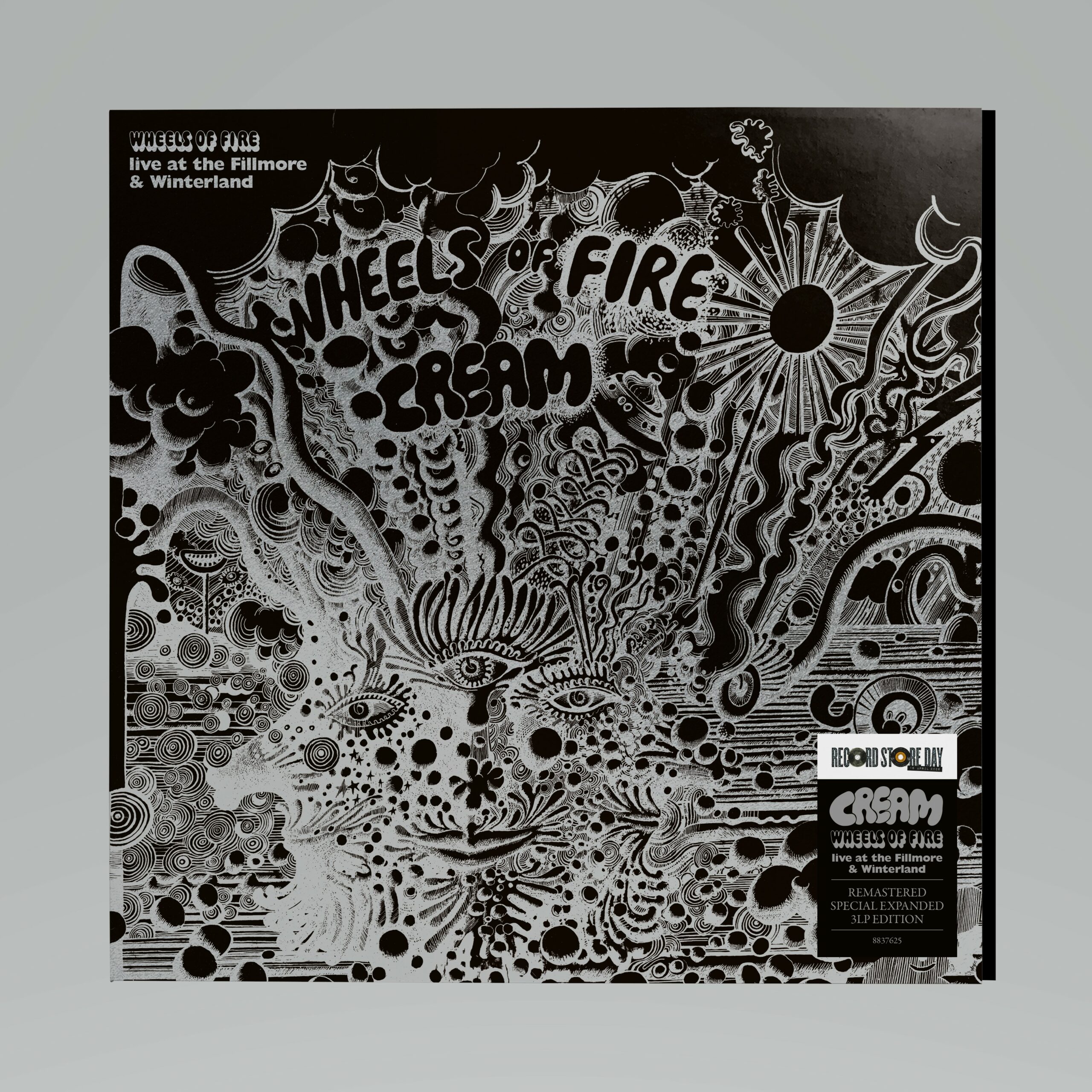 Le troisième album de Cream, « Wheels of Fire », est sorti en août 1968. L’album comprenait un dsique de nouveaux enregistrements et un disque de titres live enregistrés en mars 1968 au légendaire Fillmore Auditorium et au Winterland Ballroom de San Francisco. Pour le RSD 2026, nous sommes heureux de proposer une édition spéciale 3LP de « Wheels of Fire: Live at the Fillmore & Winterland », qui comprend les 4 titres originaux publiés sous « Wheels of Fire: Live at the Fillmore », ainsi que 8 titres supplémentaires interprétés lors des concerts de mars 1968. Sept des titres supplémentaires ont été publiés sur « Live Cream » en 1970 et « Live Cream Volume 2 » en 1972. « We’re Going Wrong » n’a jamais été officiellement publié auparavant. Tous les titres ont été remasterisés pour cette édition.